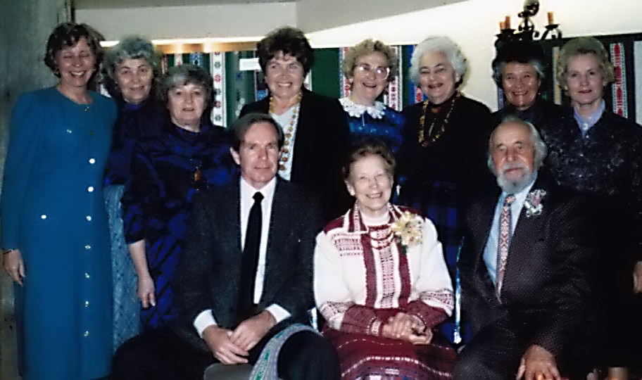 LTFAI members at an exhibition at the Lithuanian House in Toronto, 1988, possibly for the launch of one of the LTFAI books by Anastazija and Antanas Tamošaitis. Seated (from left) – prof. Romas Vaštokas, Antastazija Tamošaitienė, Antanas Tamošaitis; standing, from left Irena Šernaitė-Meiklejohn, Audronė Kazanavičienė, Toronto chapter chair Aldona Vaitonienė, Lilė Nakrošienė, Greta Baltaduonienė, Hilda Lasienė, Onutė Taseckienė, Aldona Veselkienė